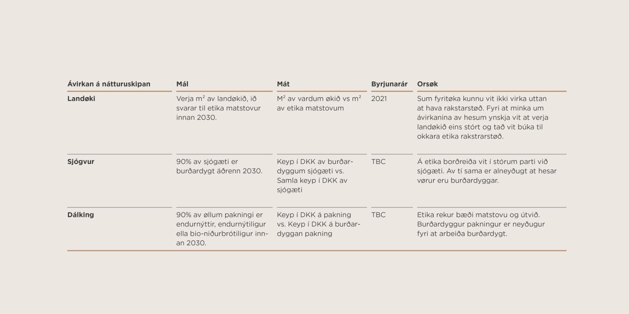 MÁL: Vit ætla at gerast net-positiv í okkara ávirkan á hav, land og vøtn áðrenn 2030, og etika verður fyrsta eindin at røkka hesum máli.